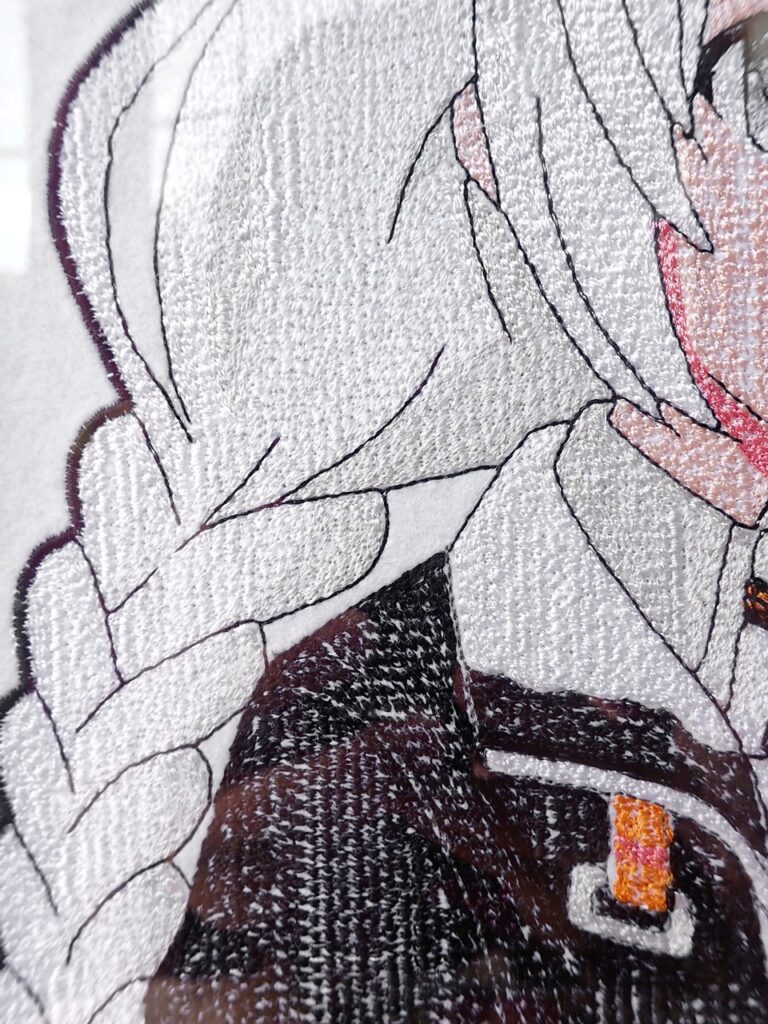 印刷では出せない糸の輝き、針と糸で描き上げた新しいキャラクターの表情をお楽しみ下さい。