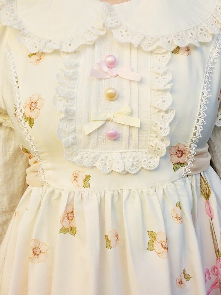 袖セパレート式丸襟ハートレースOp クリームイエロー