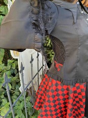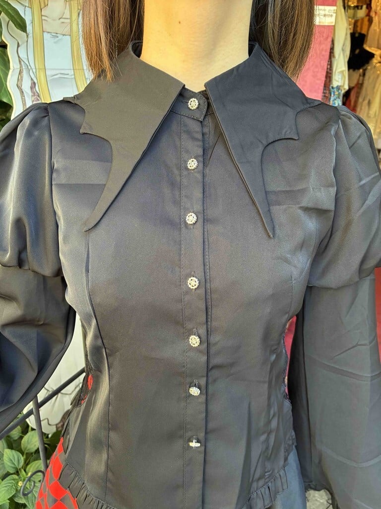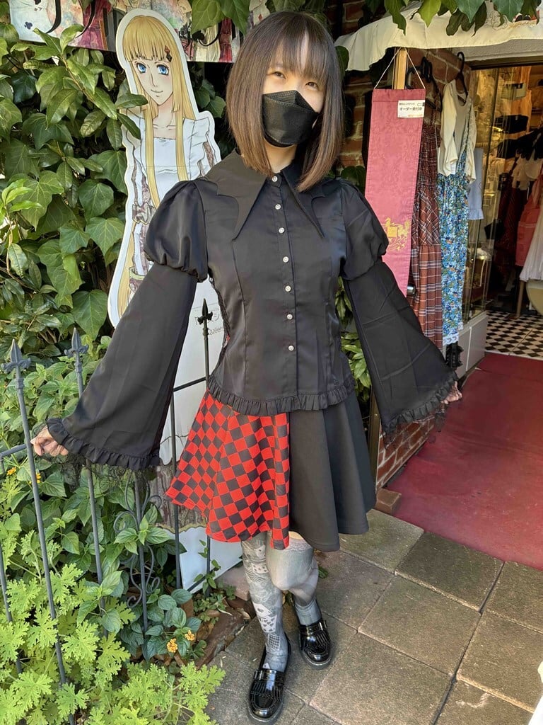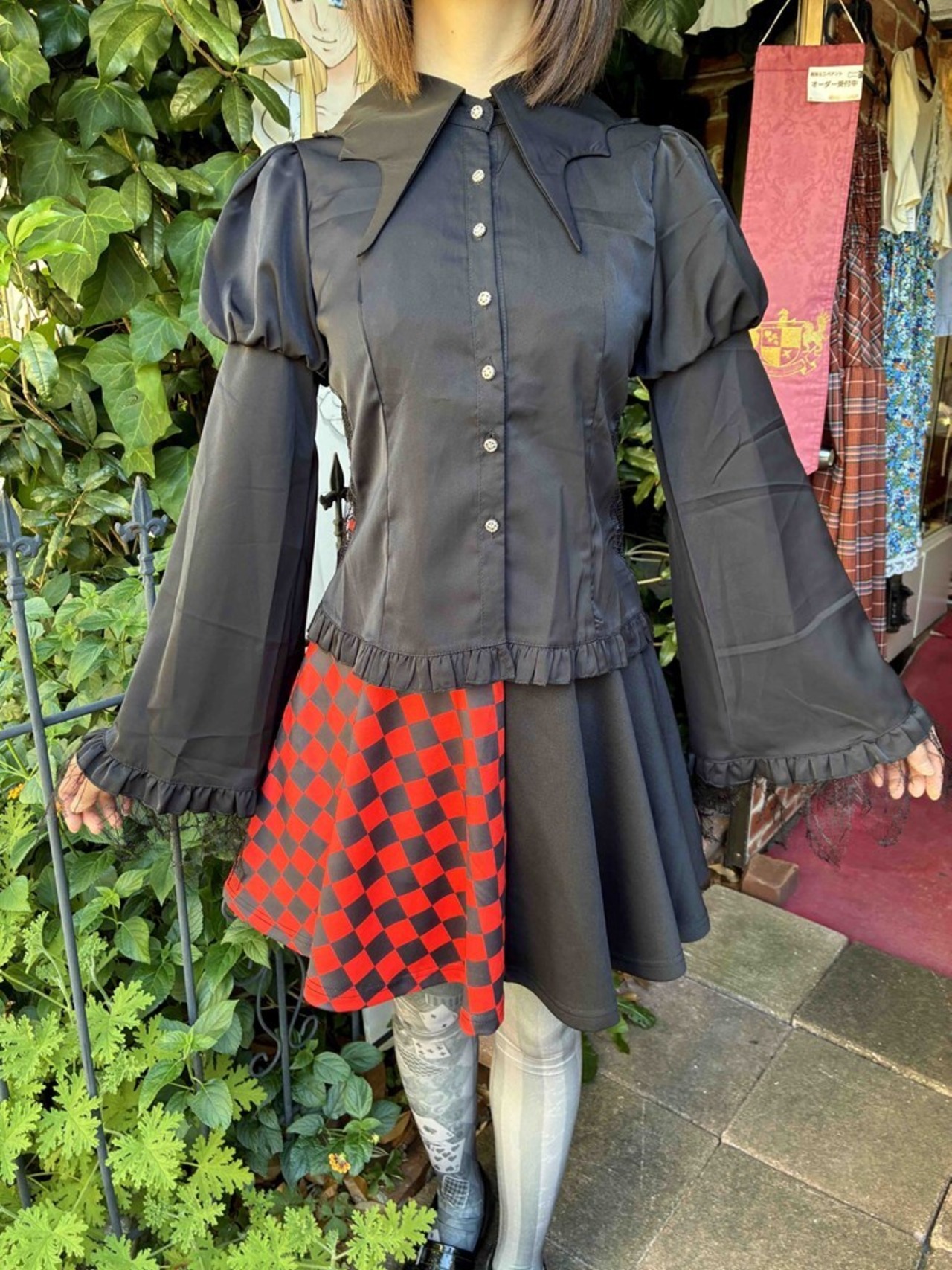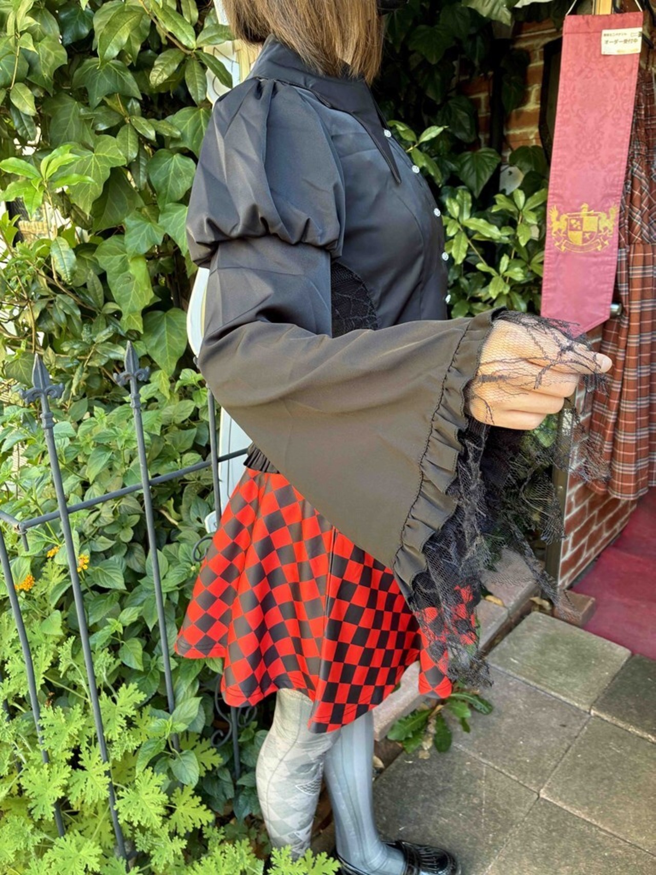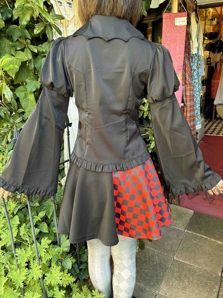また、まるで蝙蝠の羽のような特徴的な襟が顔周りを華やかにしつつ、バルーン袖が上品さをプラス。気分はさながらゴシック貴族です。