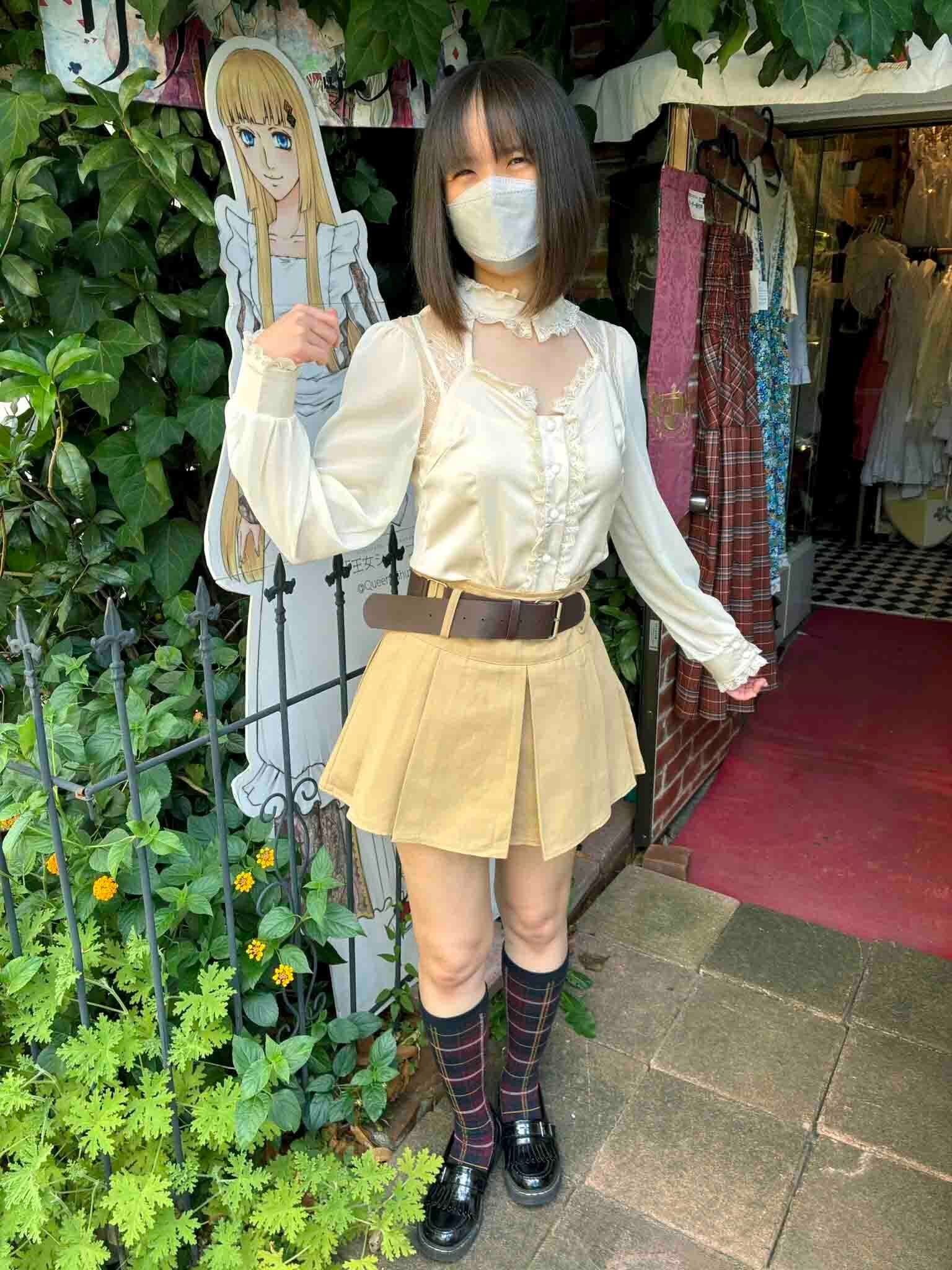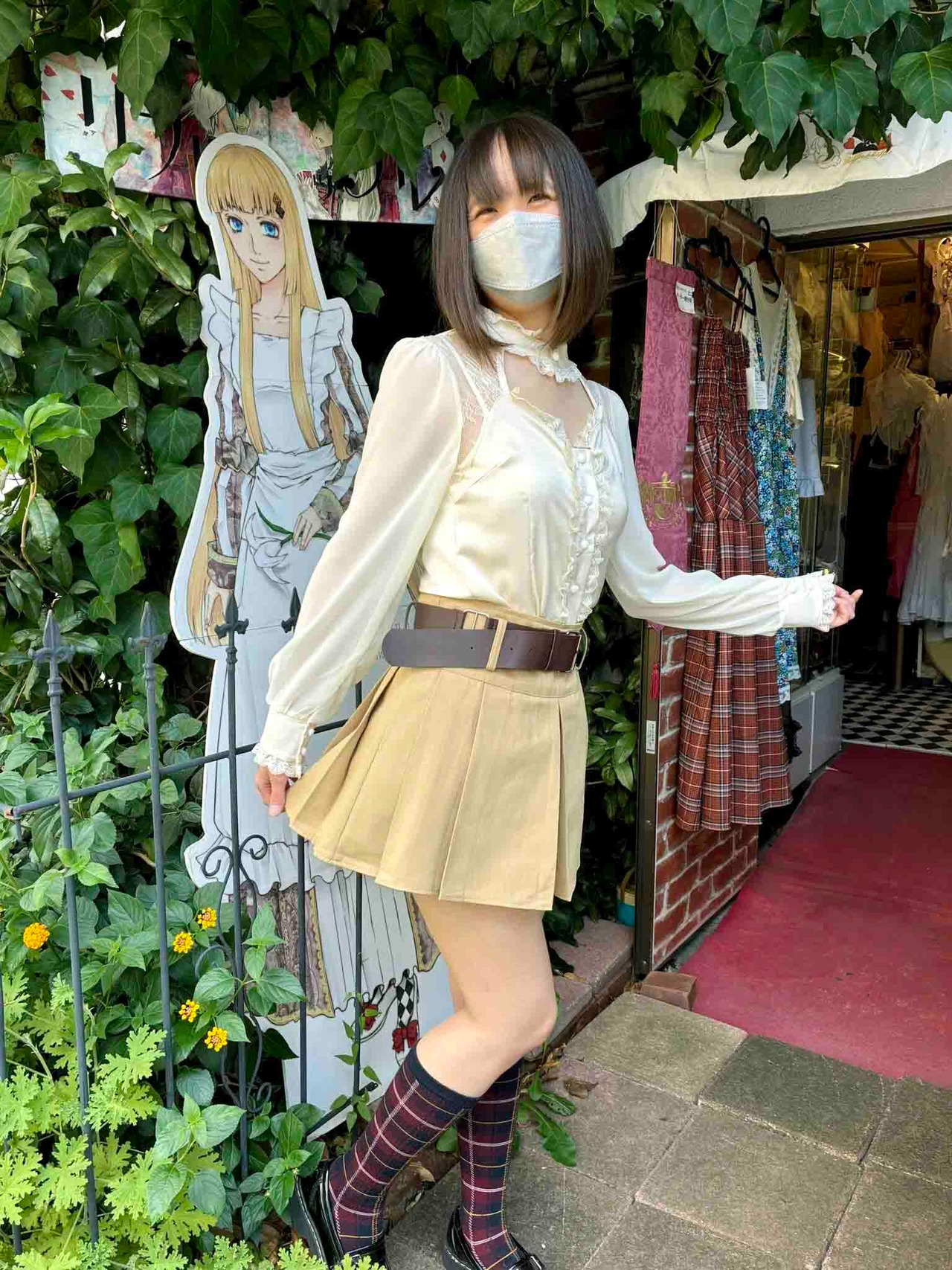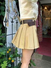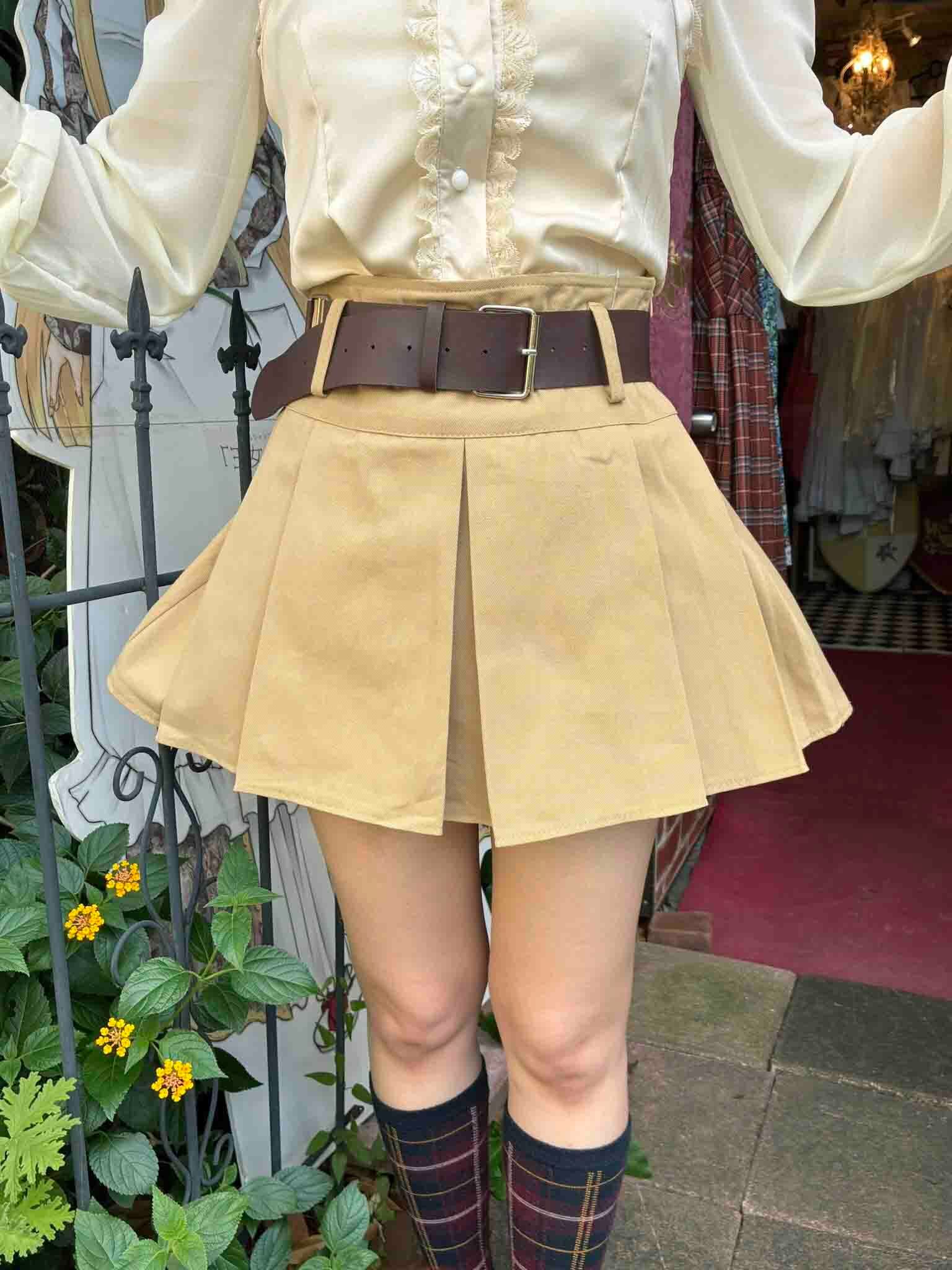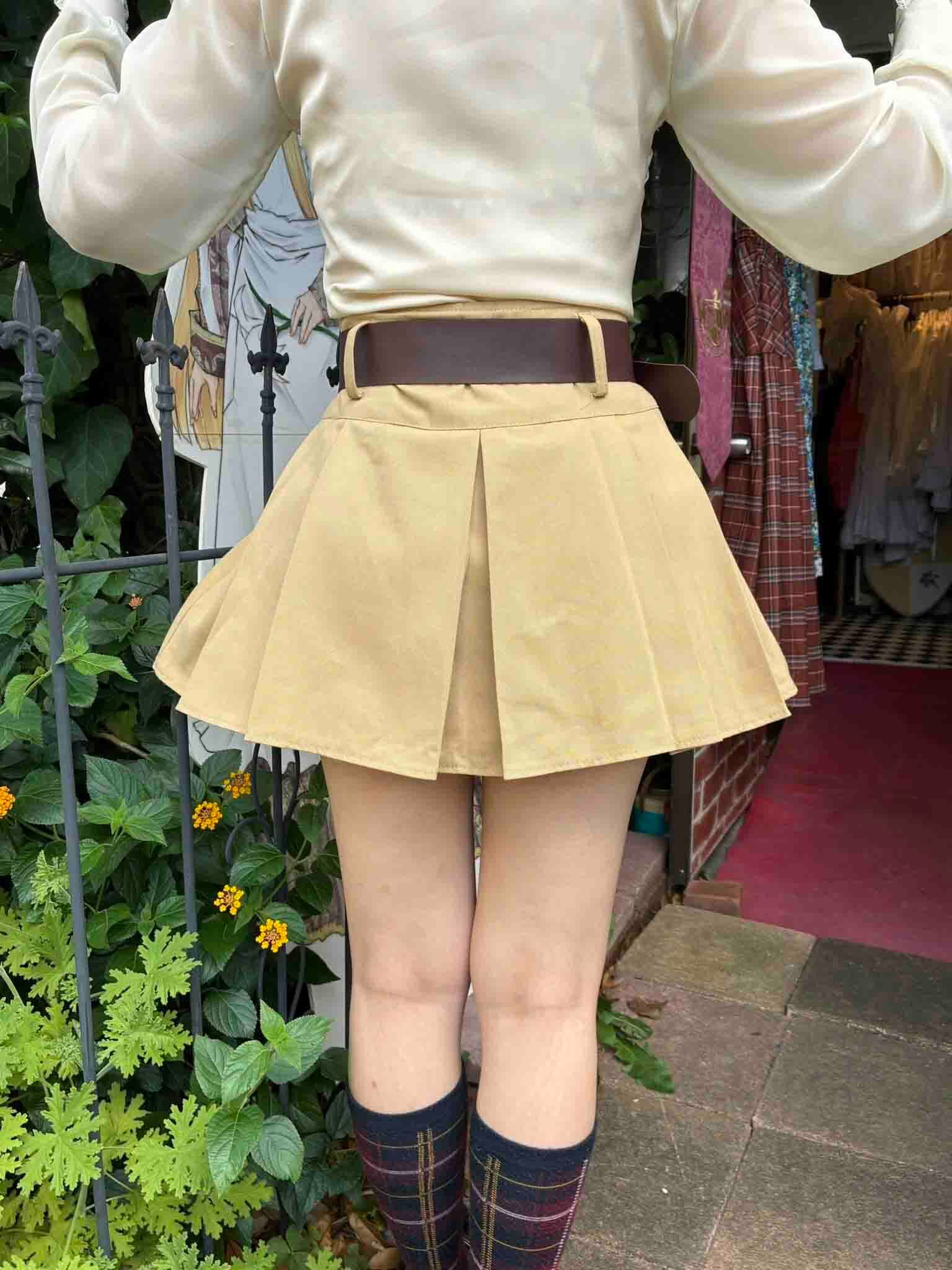 スカート生地と付属ベルトがカーキ系でまとめられているので、落ち着いた印象をコーデにプラス。