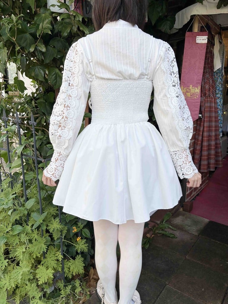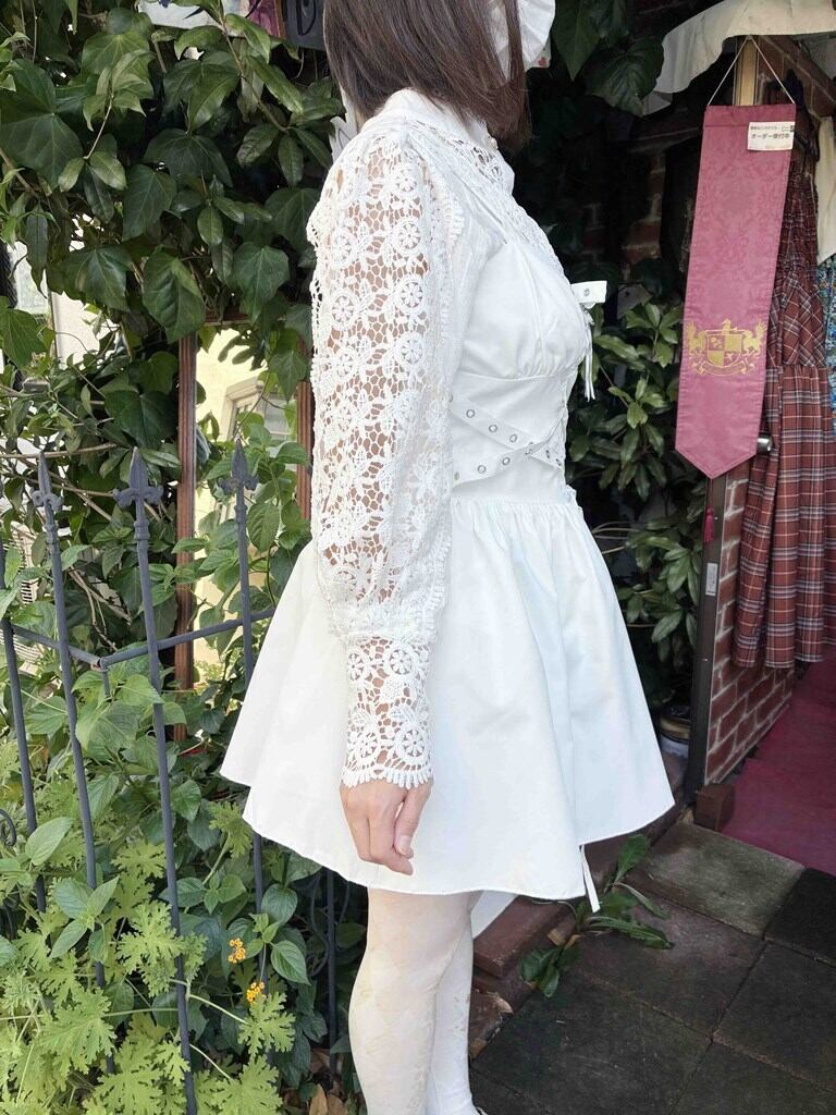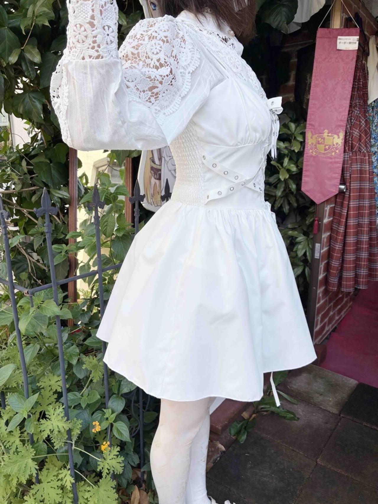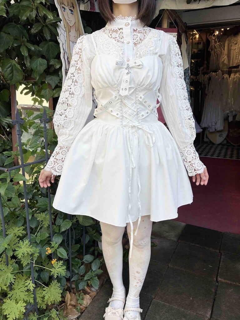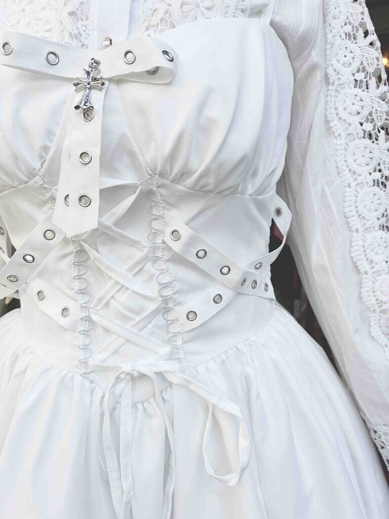 十字架リボンと編み上げのハトメ飾りゴシックジャンパースカート 白