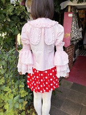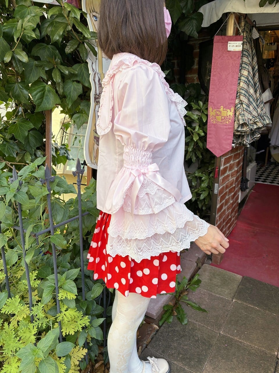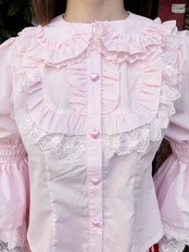 フリルブラウス 4段レース姫袖とハートボタンのうさみみ丸襟フリルブラウス ピンク