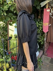 白パールビーズのアクセントが全体的に洗練された印象を与え、黒や白のスカートと合わせやすく、おしゃれの幅が広がります。
