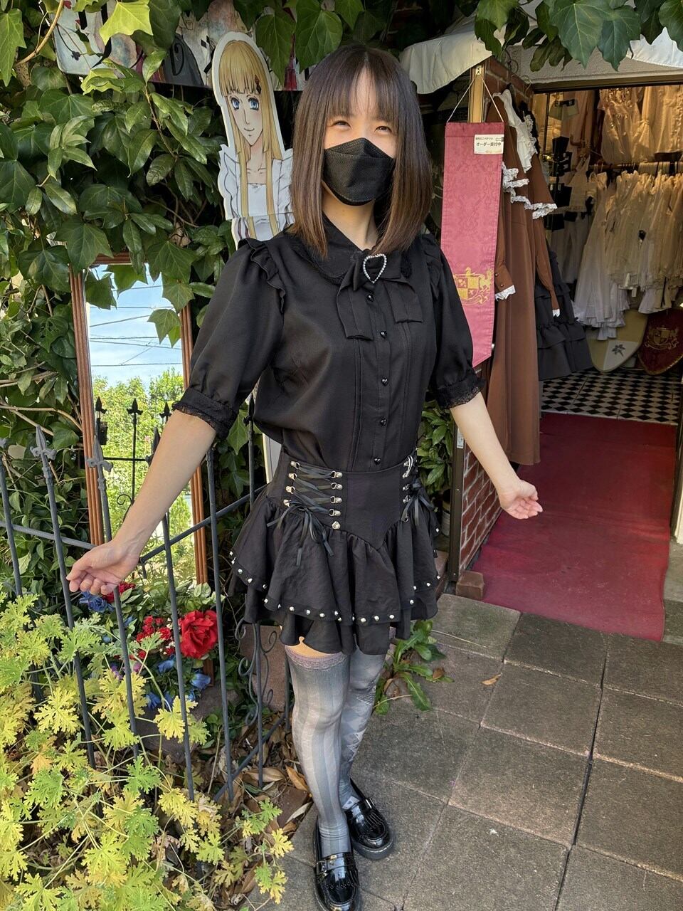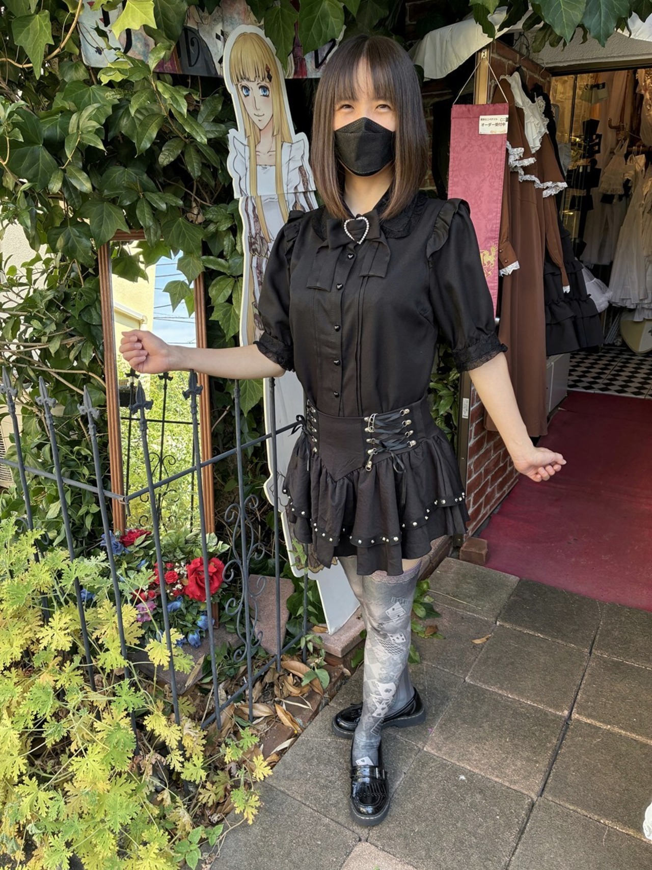 黒レースを重ねた丸襟や袖口には、同じく黒レースのフリルが飾られ、優しさと繊細さをプラス。