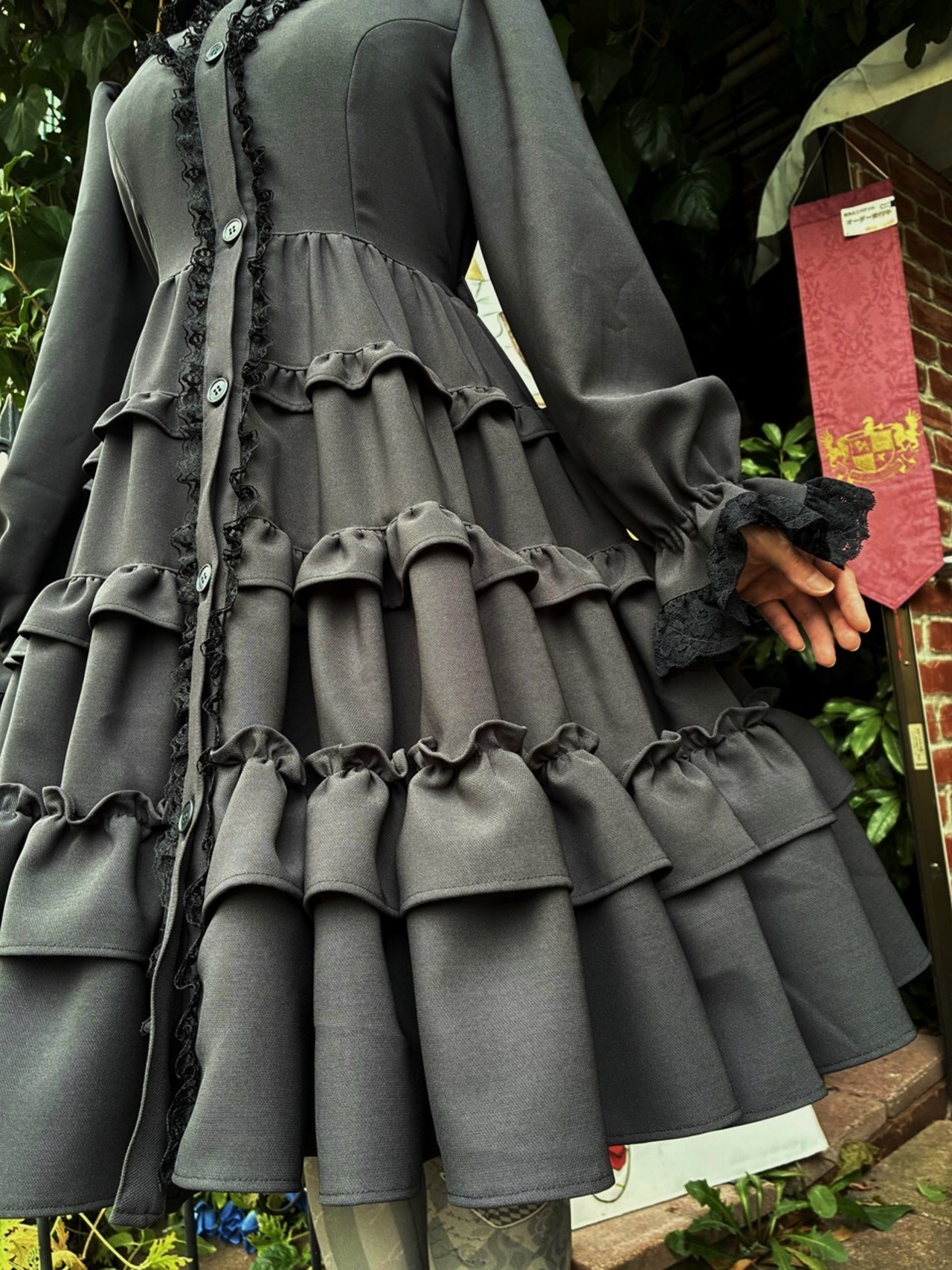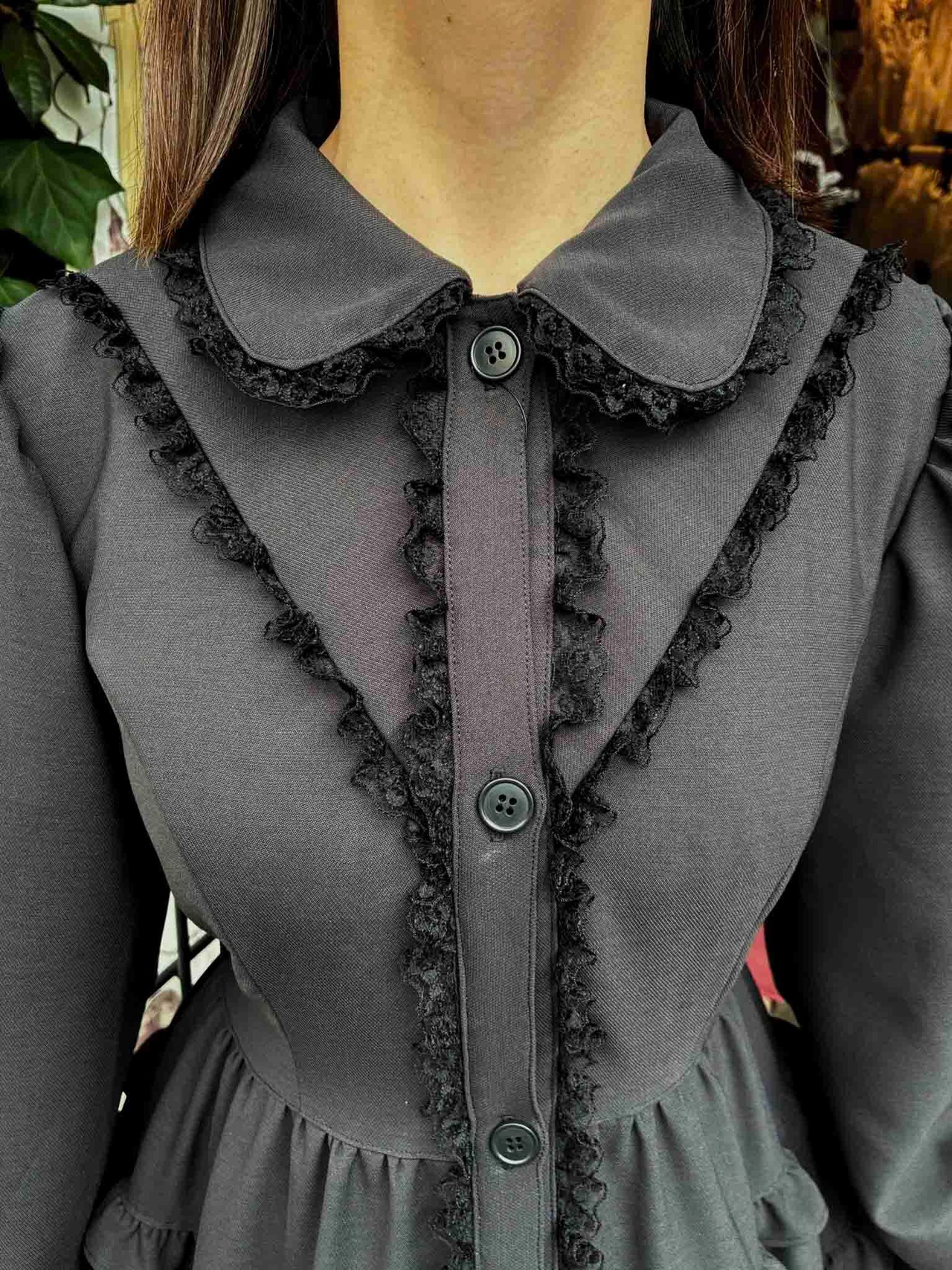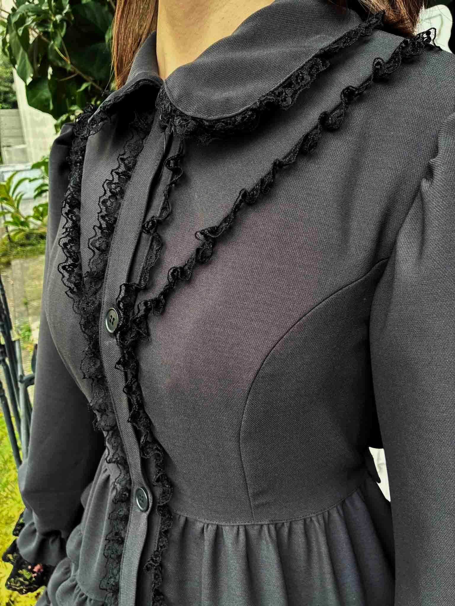 チャコールグレーの生地なので、黒の陰影が分かりやすくフリルをより美しく魅せてくれることでしょう。