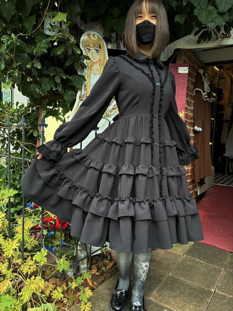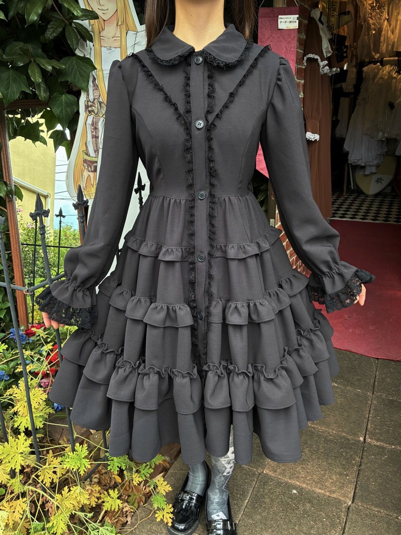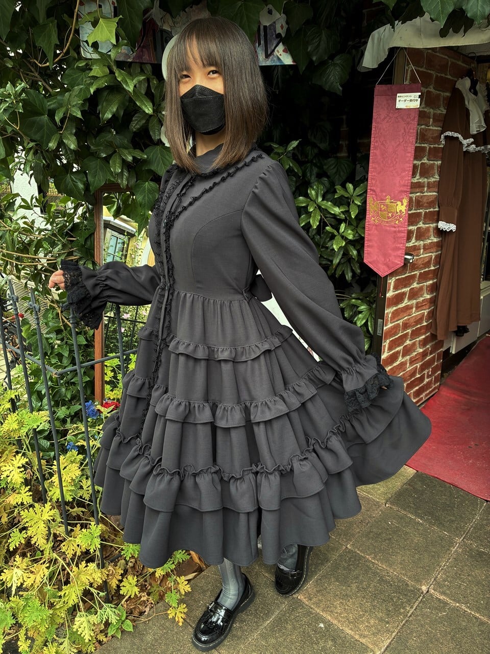 チャコールグレーの生地なので、黒の陰影が分かりやすくフリルをより美しく魅せてくれることでしょう。
