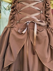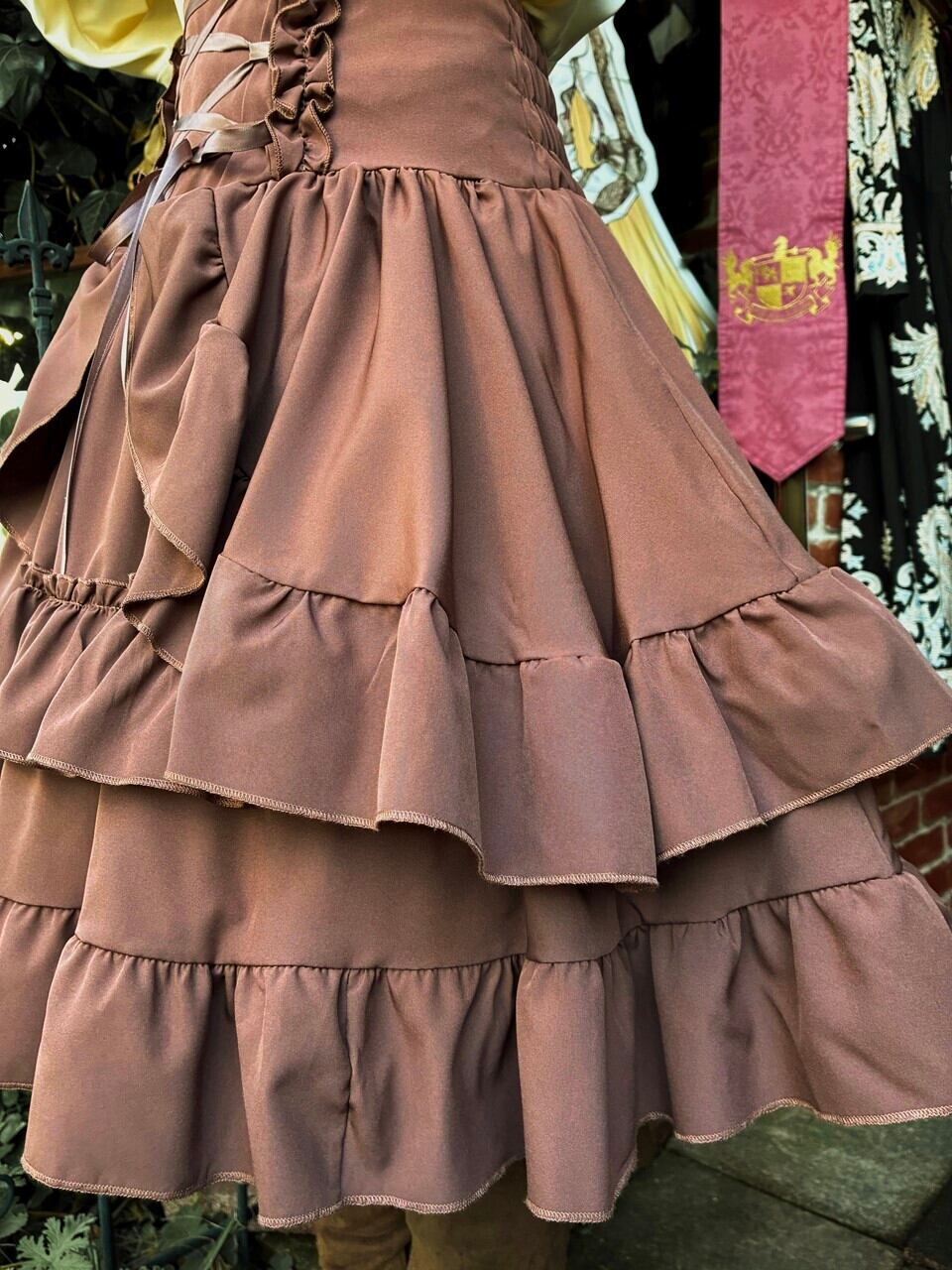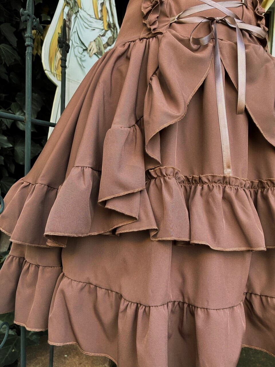 フリルと編み上げのソフトシャーリングコルセットスカート ブラウン