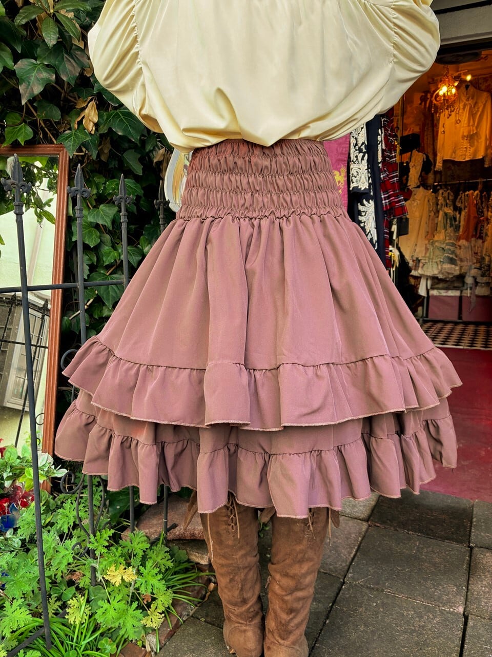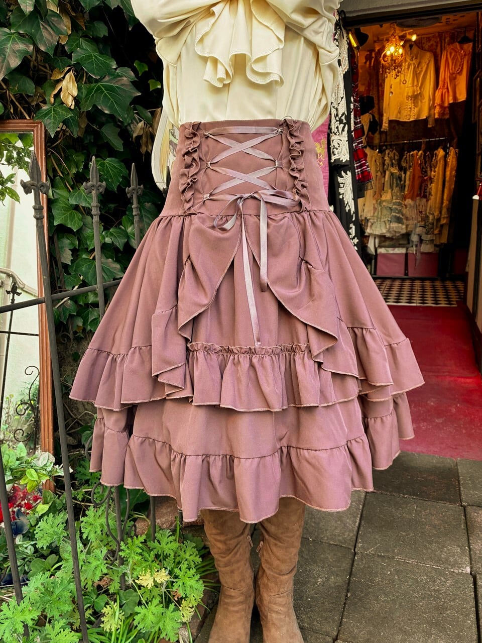 また、オーバースカートの流れるフリルラインが魅力的なアクセントとなり、ブラウス次第で多様なコーディネートを楽しむことができます。