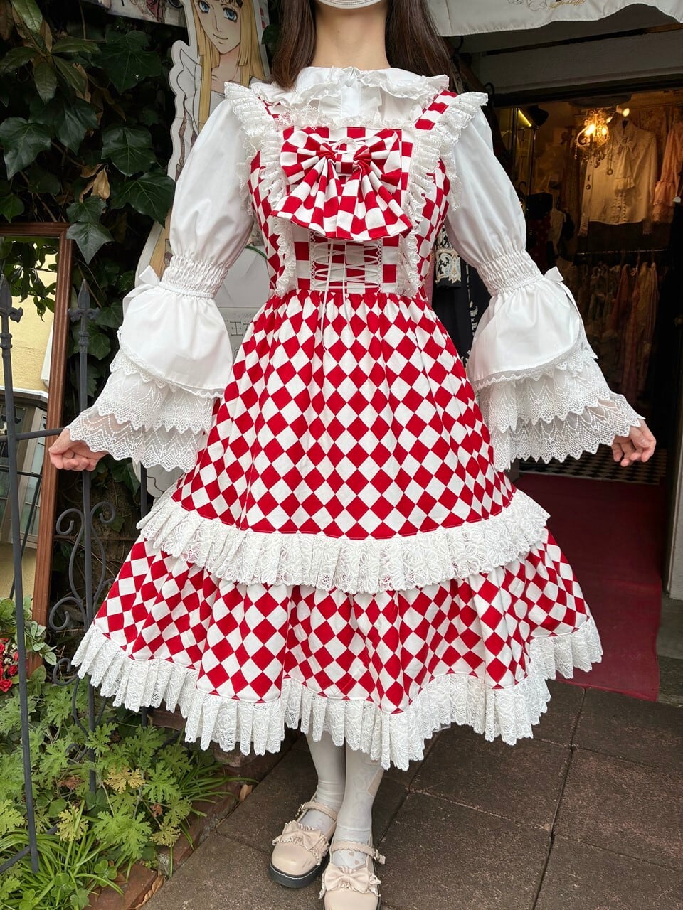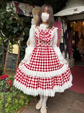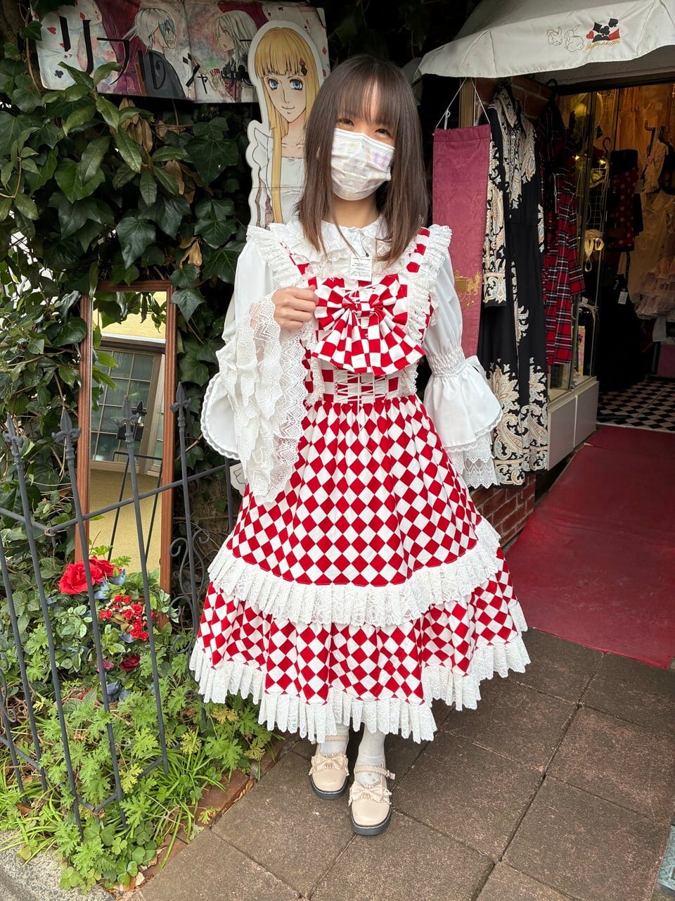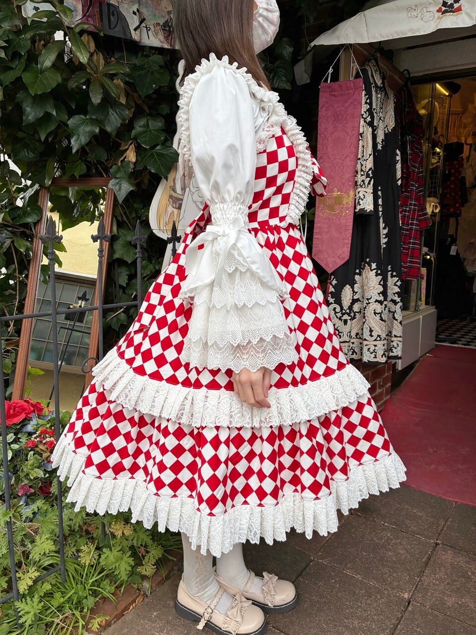 赤と白のダイヤチェック柄が、トランプの世界を連想させまます。