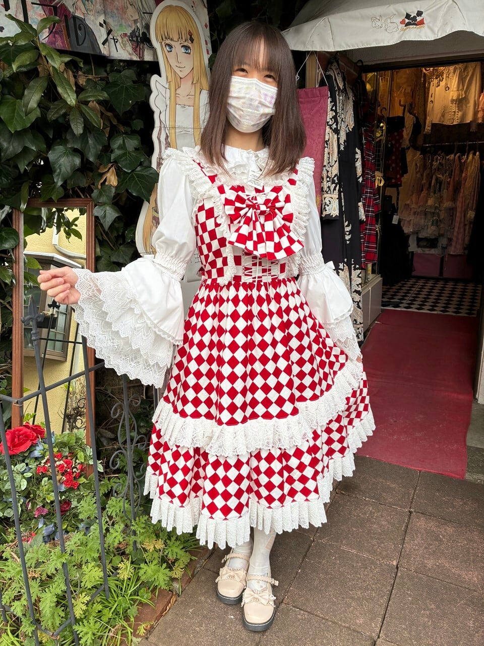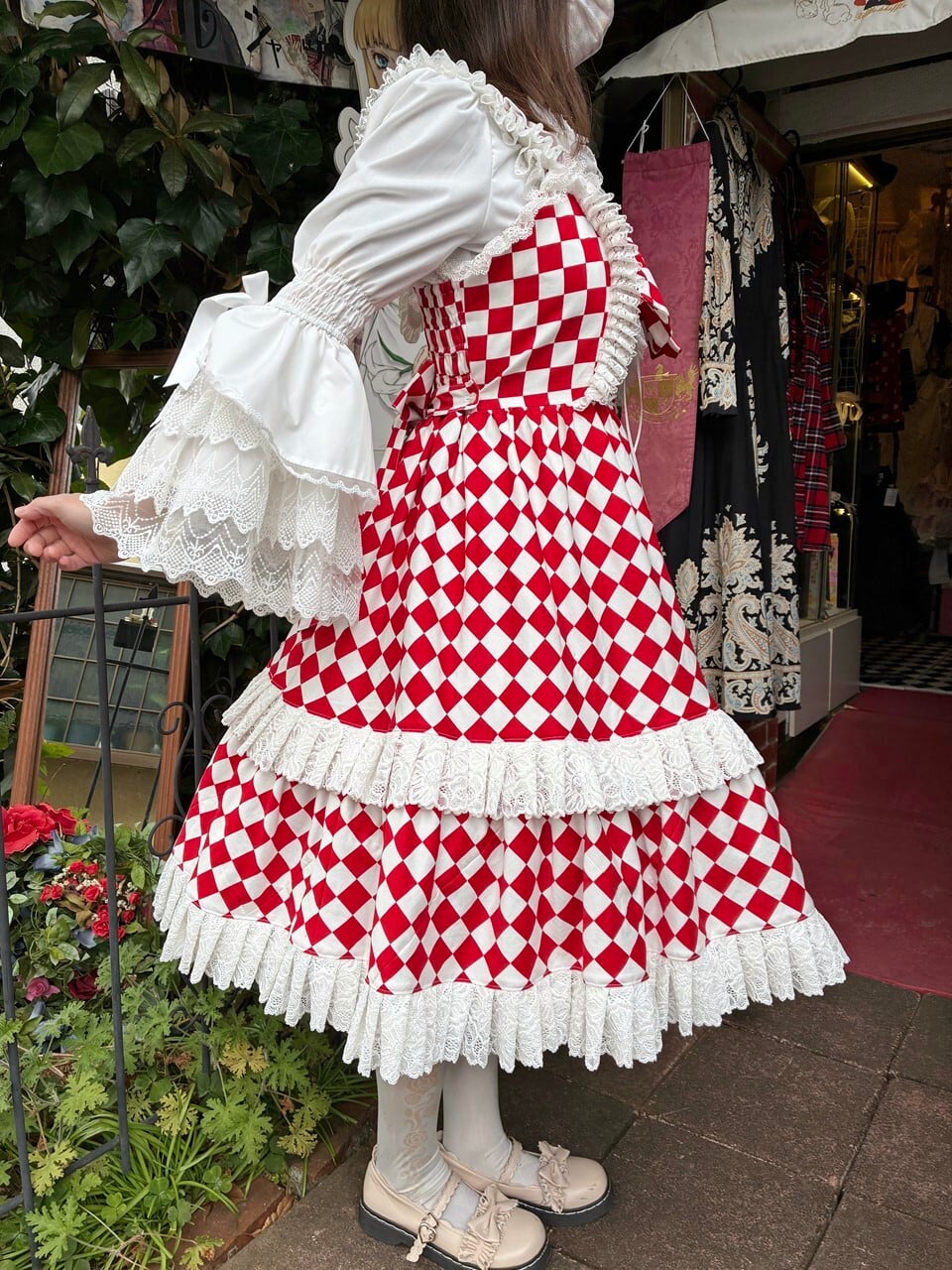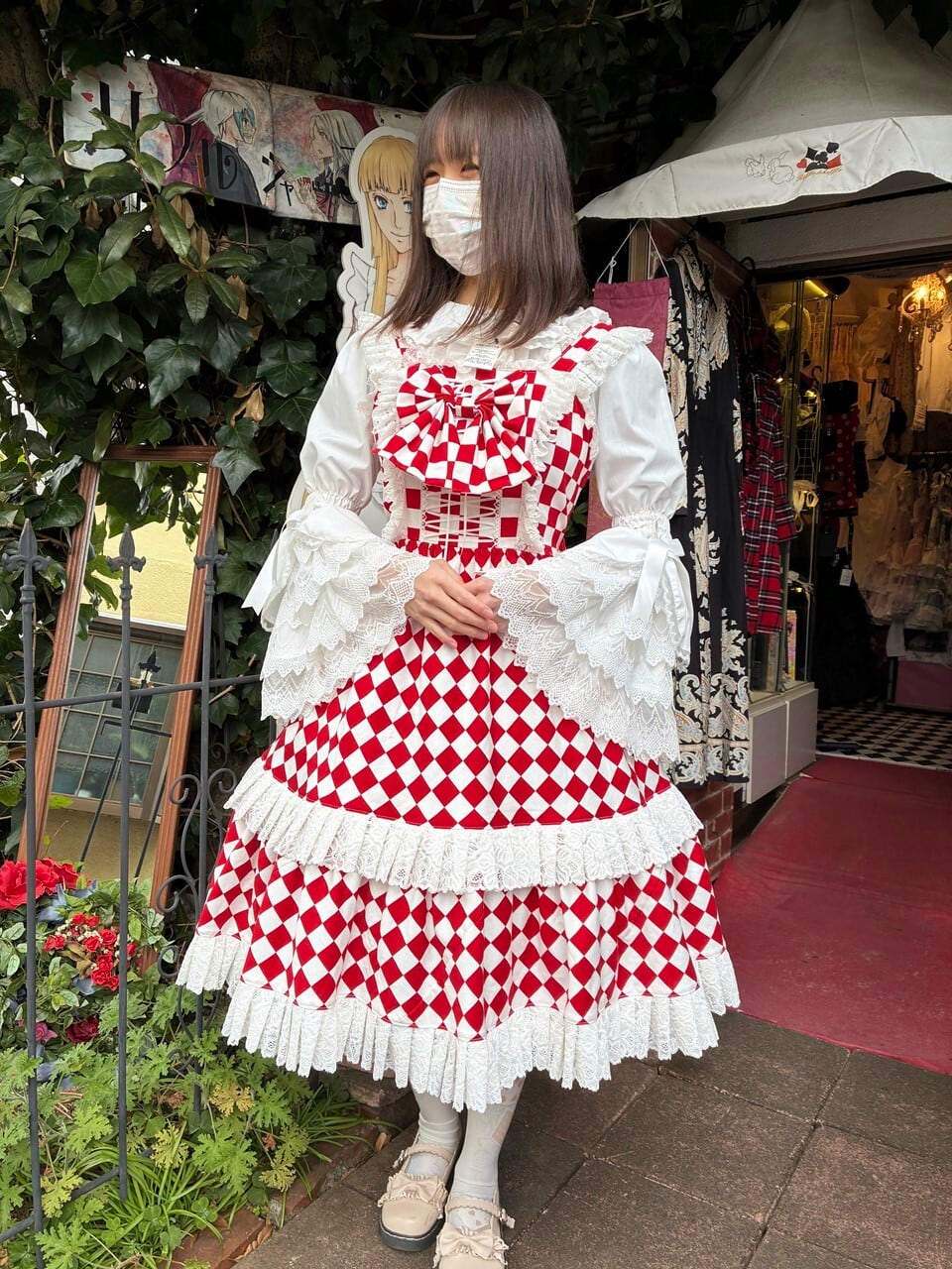 赤と白のダイヤチェック柄が、トランプの世界を連想させまます。