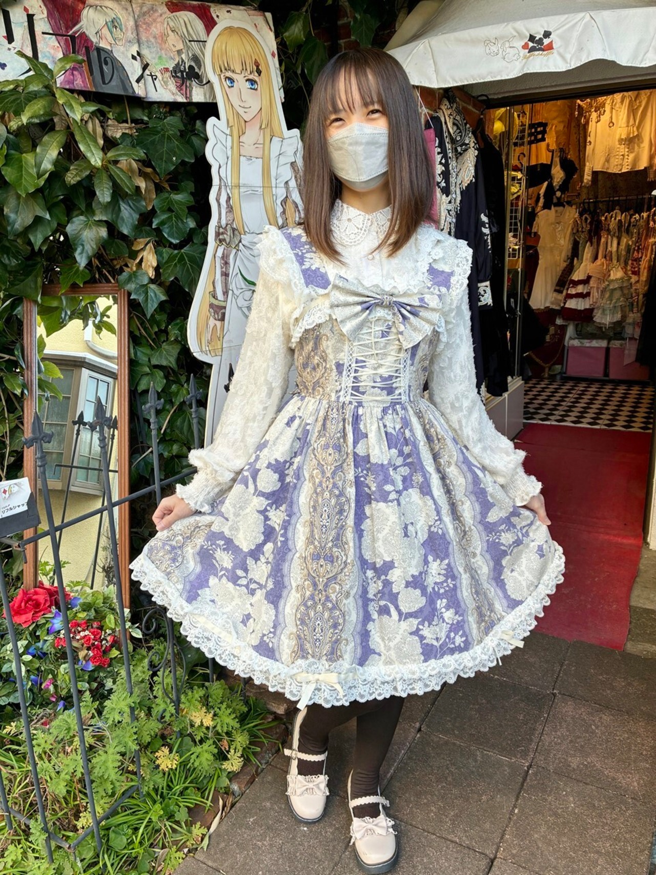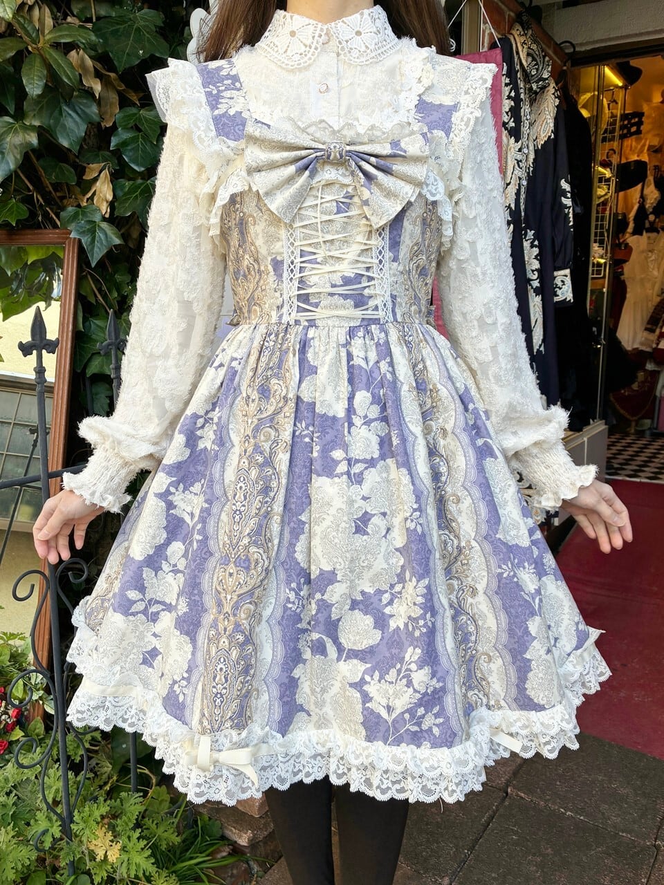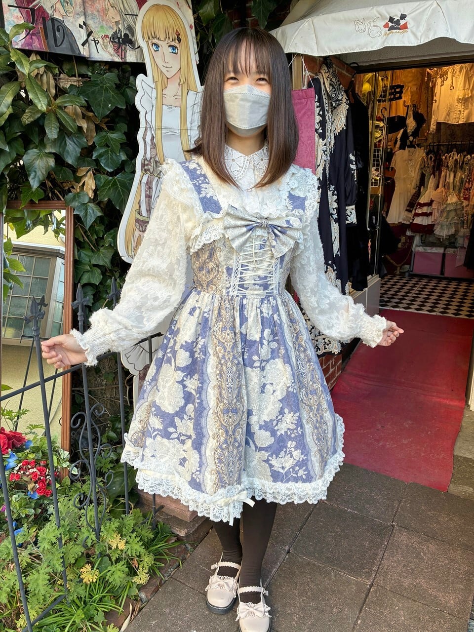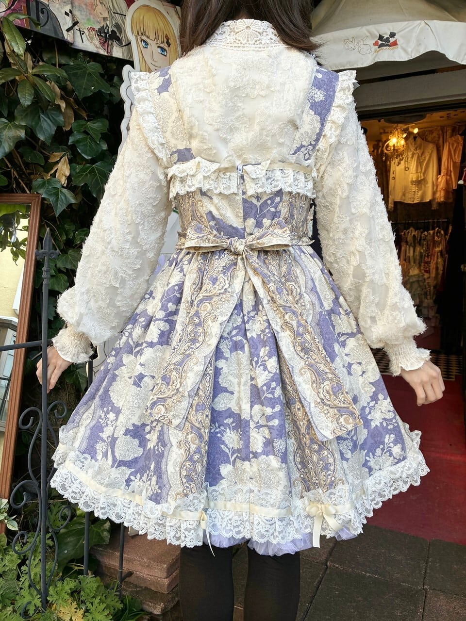 控えめお姫様のバロックフリルワンピース アンティークブルー