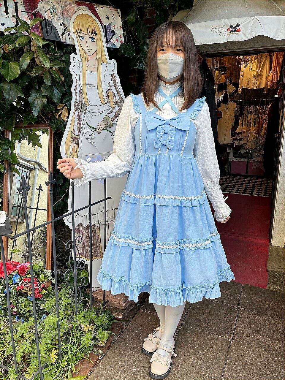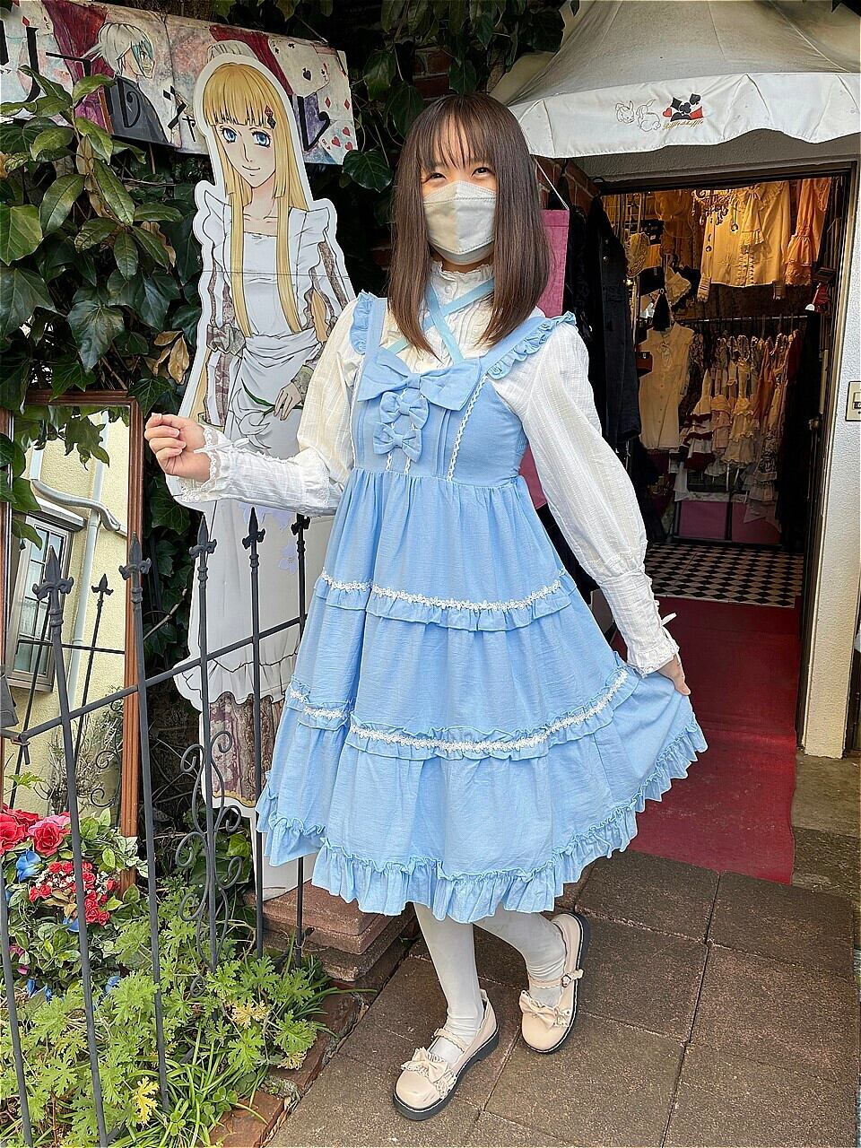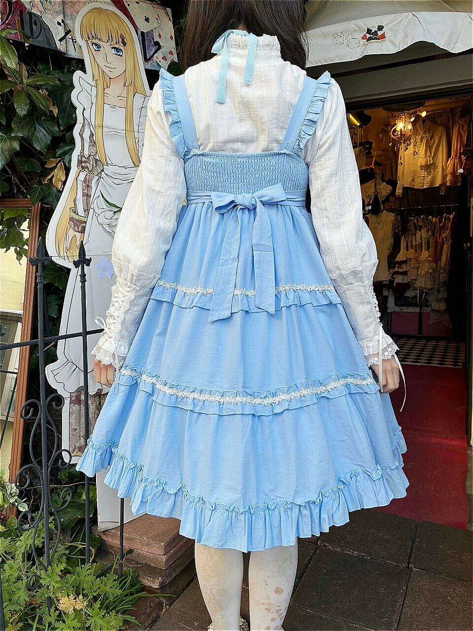 スカート部分には3段のフリルと白いバラのレース飾りが施され、より女性らしさを引き立たせています。