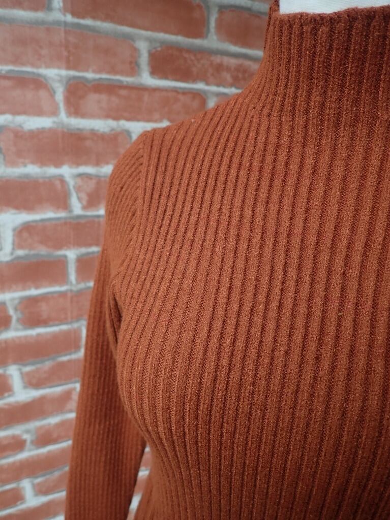 カジュアルシンプルセーターワンピース オレンジブラウン