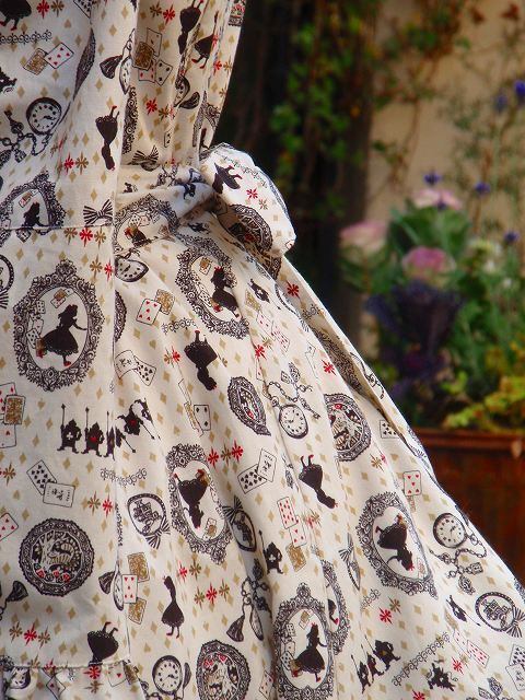 フリルとトランプに囲まれたかわいいワンピース。 落ち着いたブラウンで、ちょっぴりクラシカルな雰囲気に♪ 姫袖フリルはアームパニエと一緒のご利用でさらにかわいく着こなせます。 編み上げと、背面の腰紐リボンでサイズの調整が可能で安心。 お客様の理想のシルエットをお作りになってください。 リボンは取り外しできます。