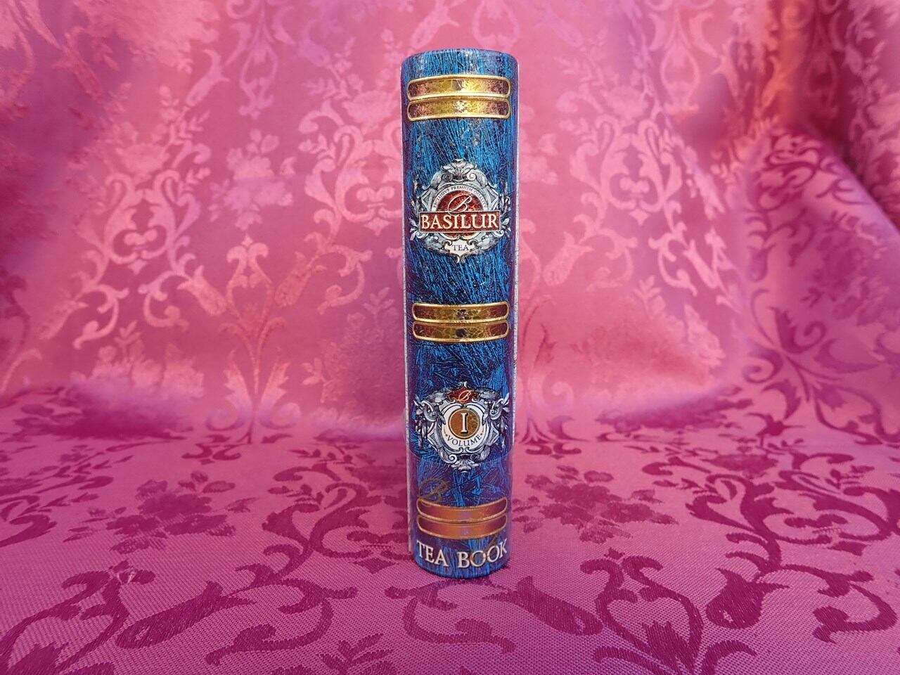 おしゃれなブルーの紅茶缶の中に、テトラパックが5袋入っています。