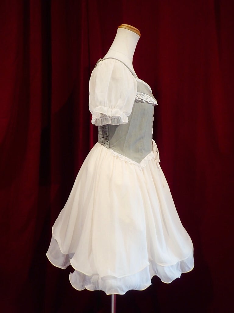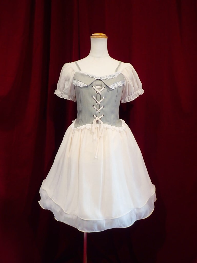 フリルワンピース パフ袖と編み上げのナチュラルシフォンフェアリーOp