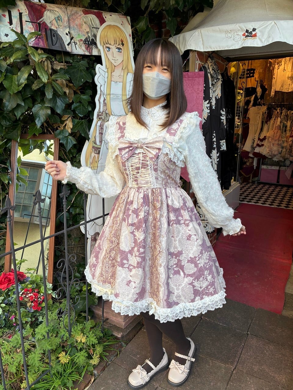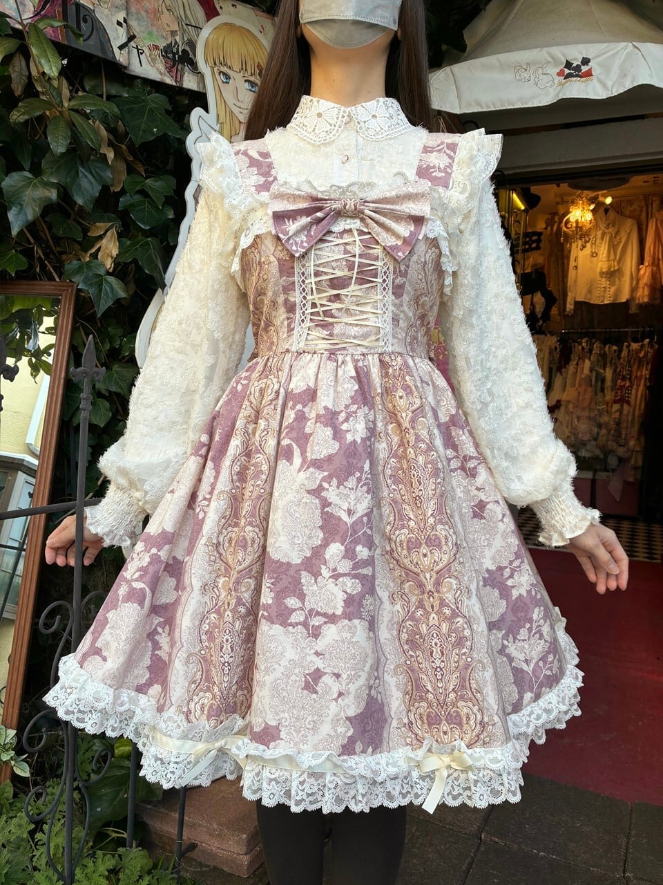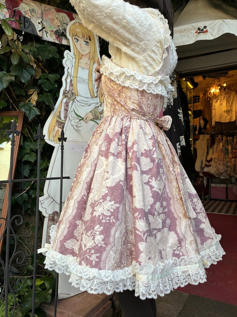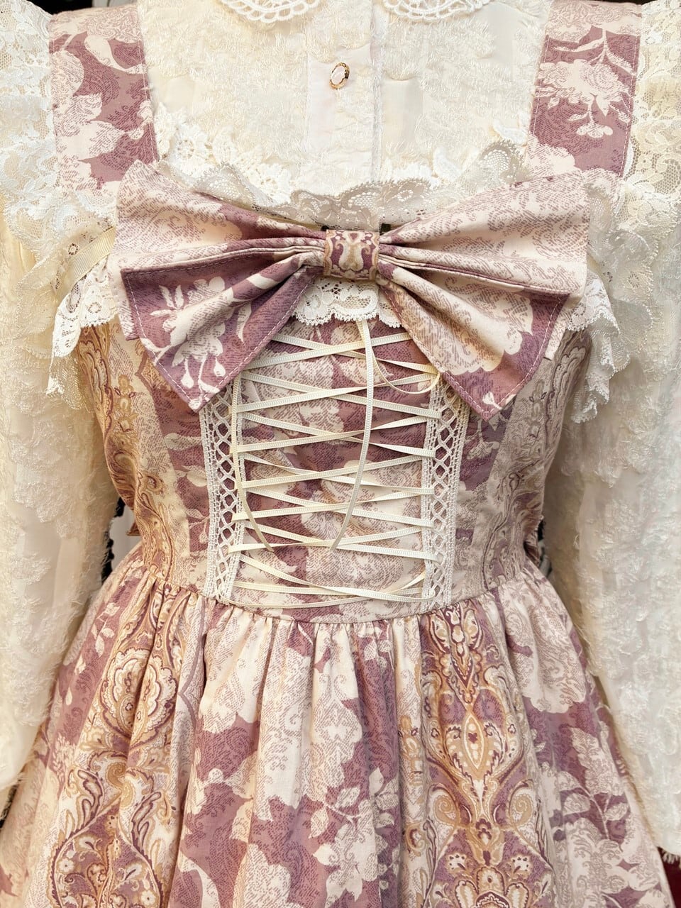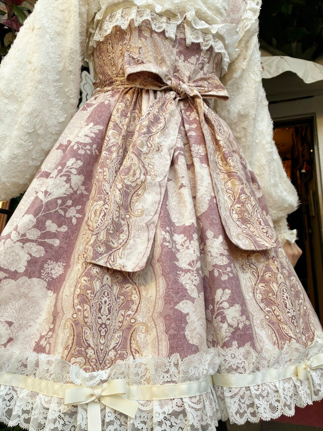 控えめお姫様のバロックフリルワンピース アンティークピンク