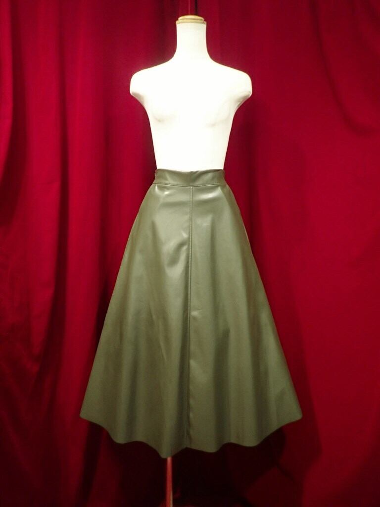 合皮フレアロングスカート背面ゴム入り カーキ