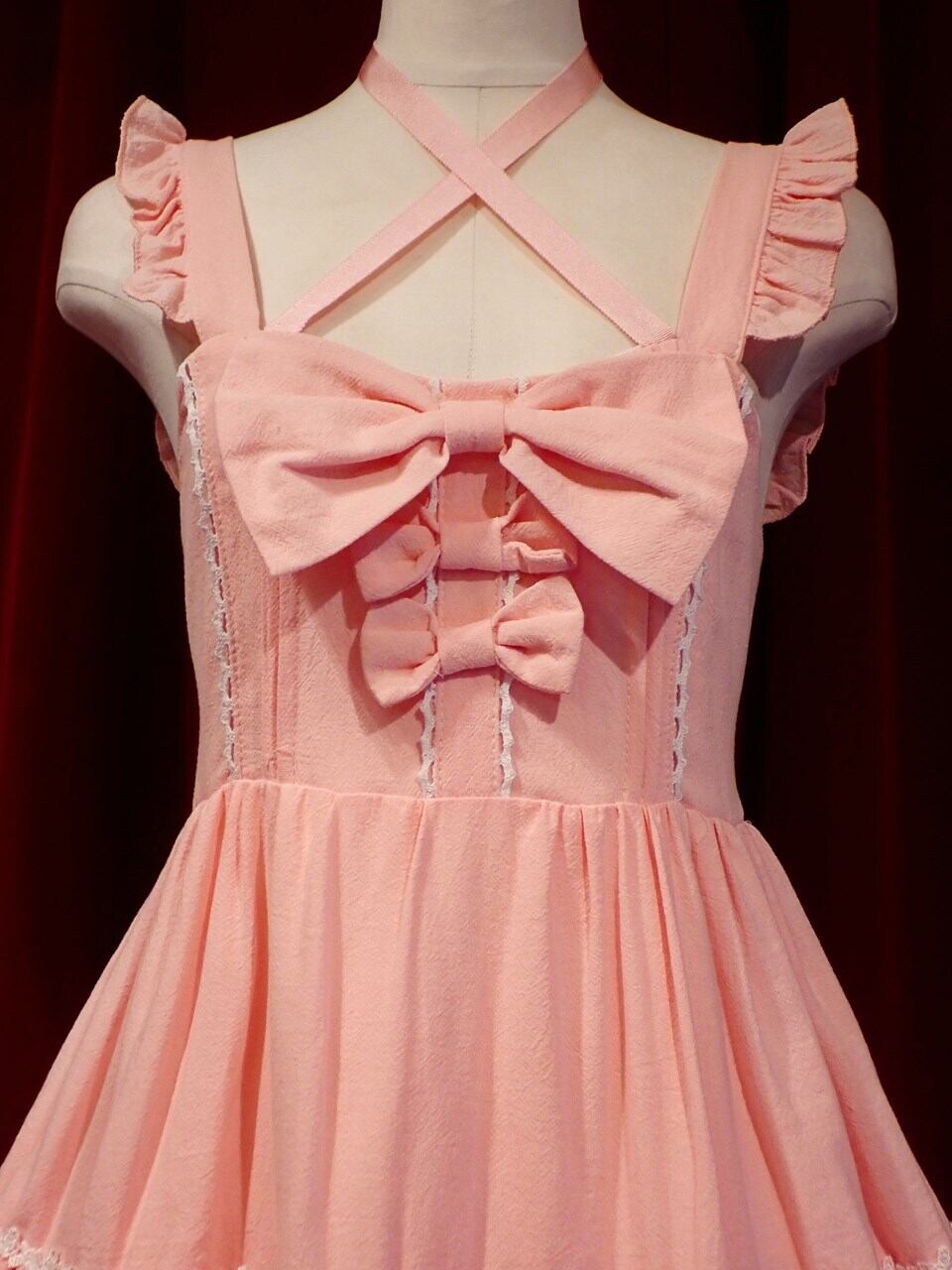 フリルワンピース 胸元クロスリボンのピンクフリルOp