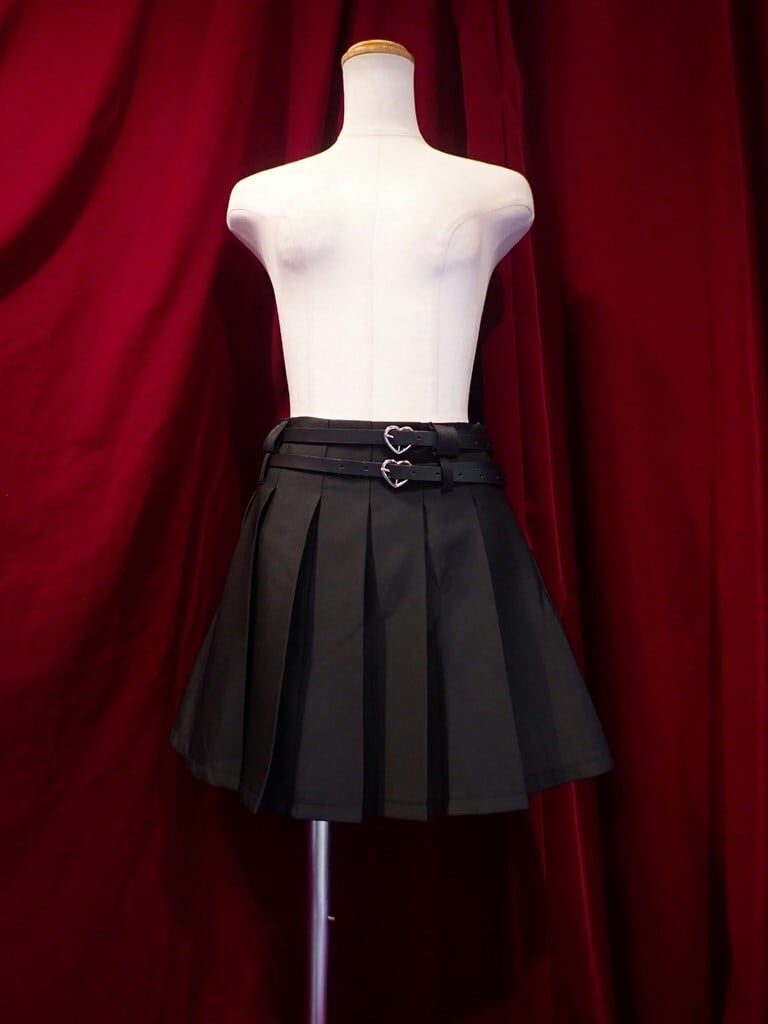 プリーツミニスカート裏地キュロットタイプ黒 2連ハートベルト付き